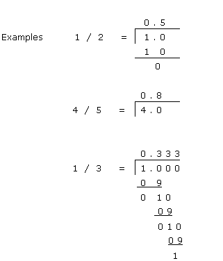 There are many situations where you will have to convert fractions to decimals. They are often easier to work with. Changing fractions to decimals is simply a division problem. All you have to do is take the numerator and divide it by the denominator.