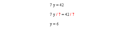 In this case “y” is multiplied by 7. To eliminate a number that is being multiplied divide by the same number. Divide both sides by 7.