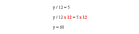 In this case “y” is divided by 12. To eliminate a number that is being divided, multiply by the same number. Multiply both sides by 12.