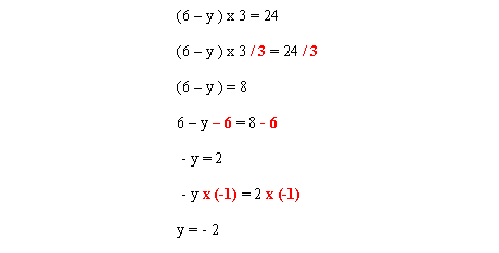 When you are left with an equation where the unknown is isolated, but negative, simply multiply both sides of the equation by – 1 to inverse the signs.